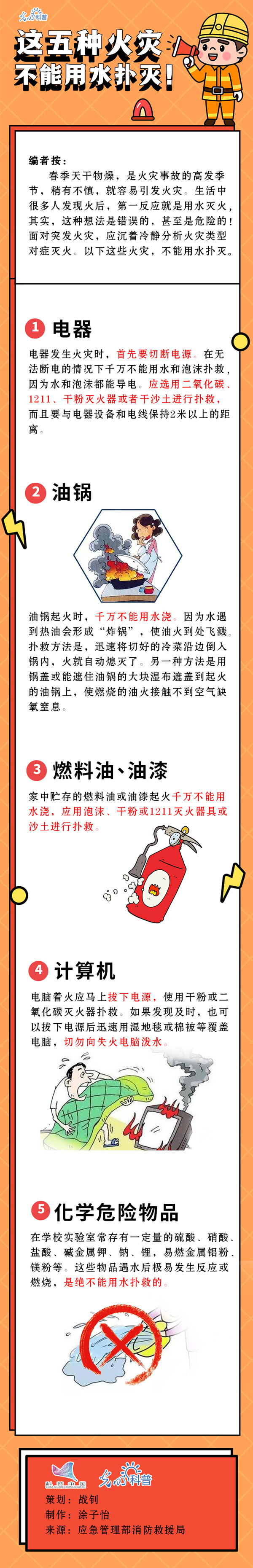 火灾无情,一旦发生,正确应对至关重要。但有些火灾类型,用水扑灭不仅无效,还可能加剧危险。今天,就来给大家科普一下,这五种火灾千万不能用水扑灭。