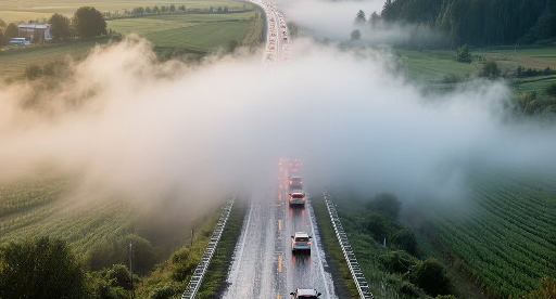 团雾堪称高速公路"特产"——来无影去无踪,局部路段突然降临,能见度瞬间暴跌至几十米。老司机形容它:"前一秒阳光明媚,后一秒眼前白茫茫"。