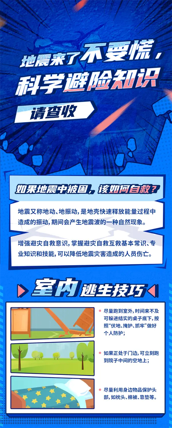 希望大家都能掌握这些地震避险知识,在面对地震时能够冷静应对,保护自己和家人的安全。部分内容来源:中国地震台网 -